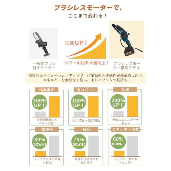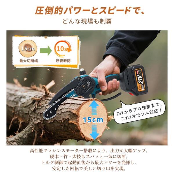 チェーンソー 充電式 ブラシレスモーター 6インチチェーンソーハンディチェーンソー マキタバッテリー対応 小型チェーンソー 電動ノコギリ自動給油