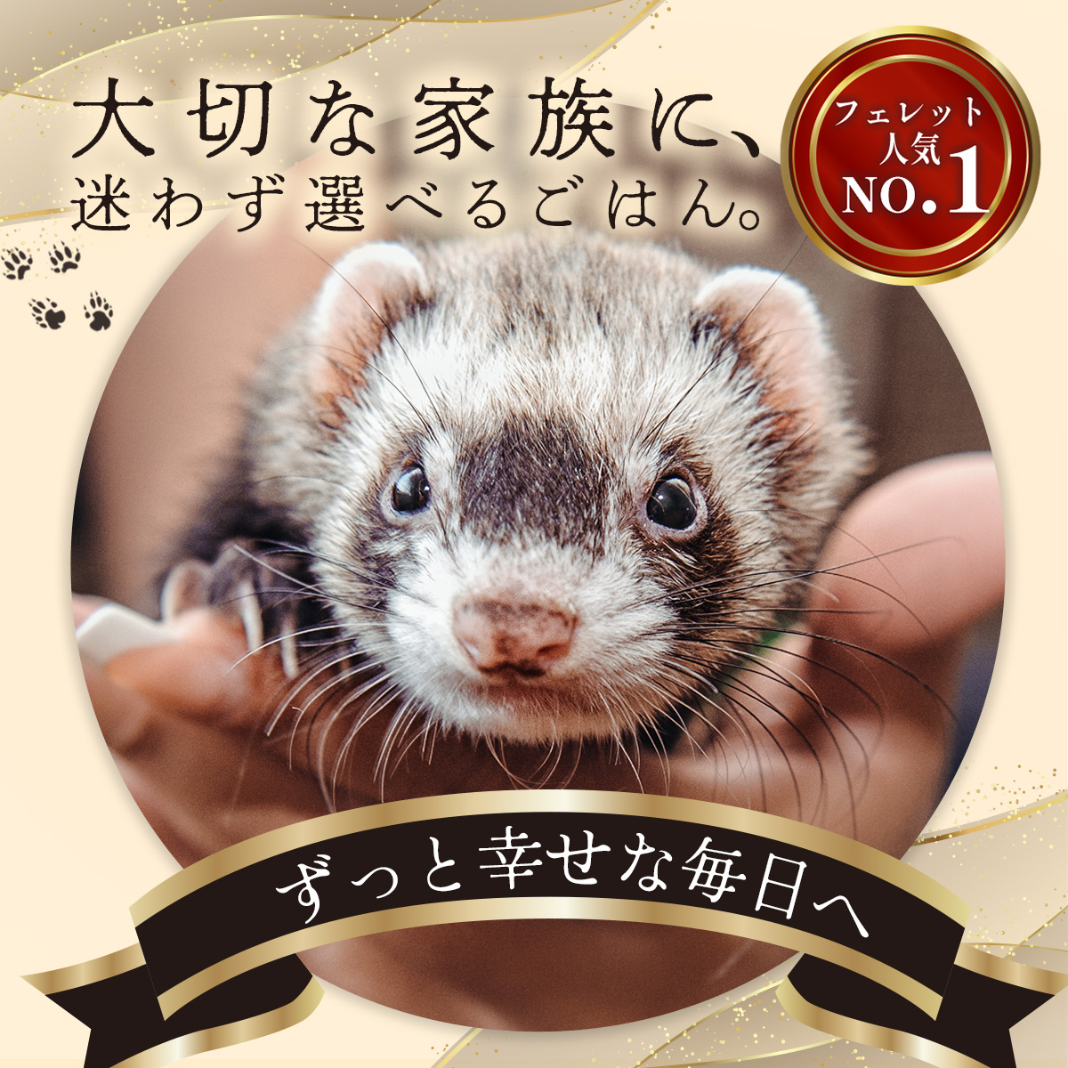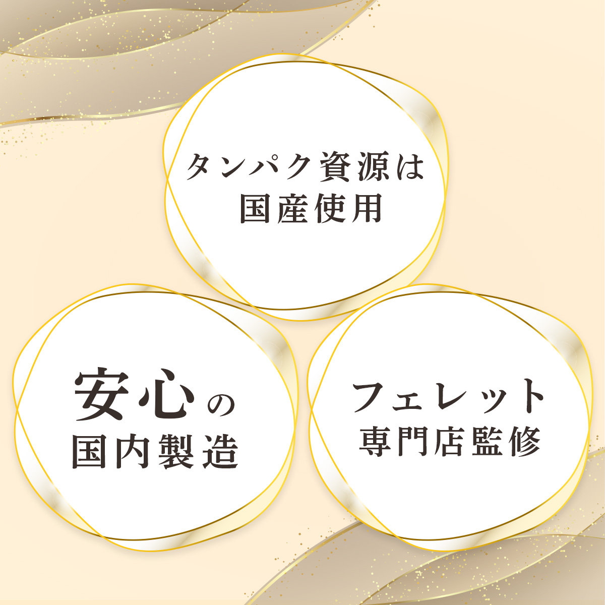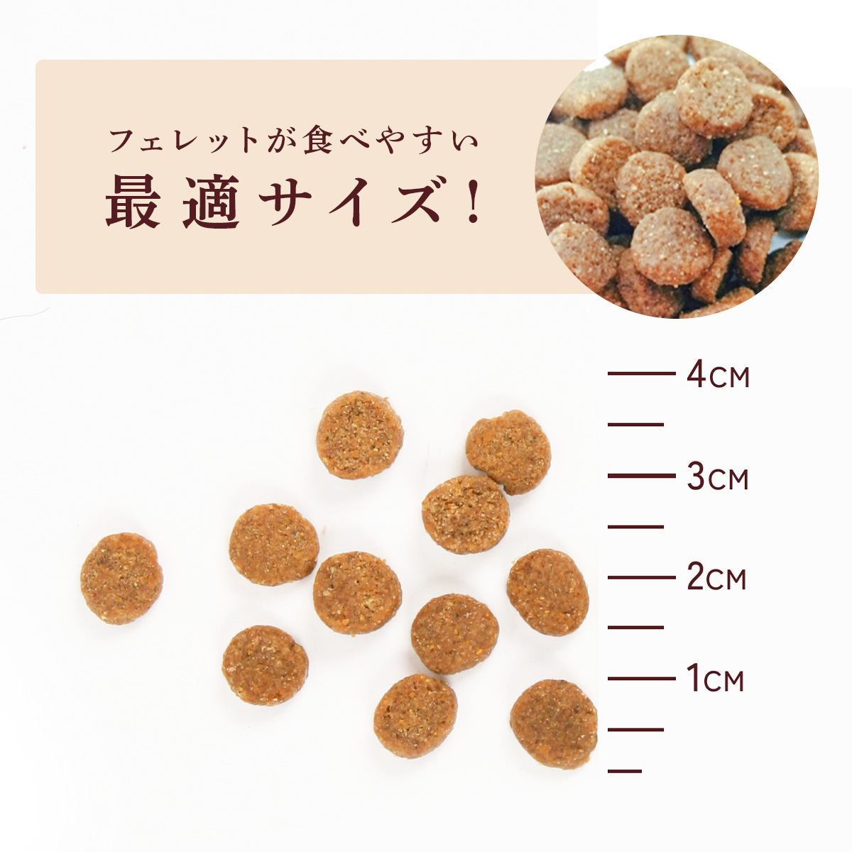 ・腸管が短くお腹の弱いフェレットに、より消化吸収を高めるため、ビール酵母、酵素など消化に良い原料を使用。