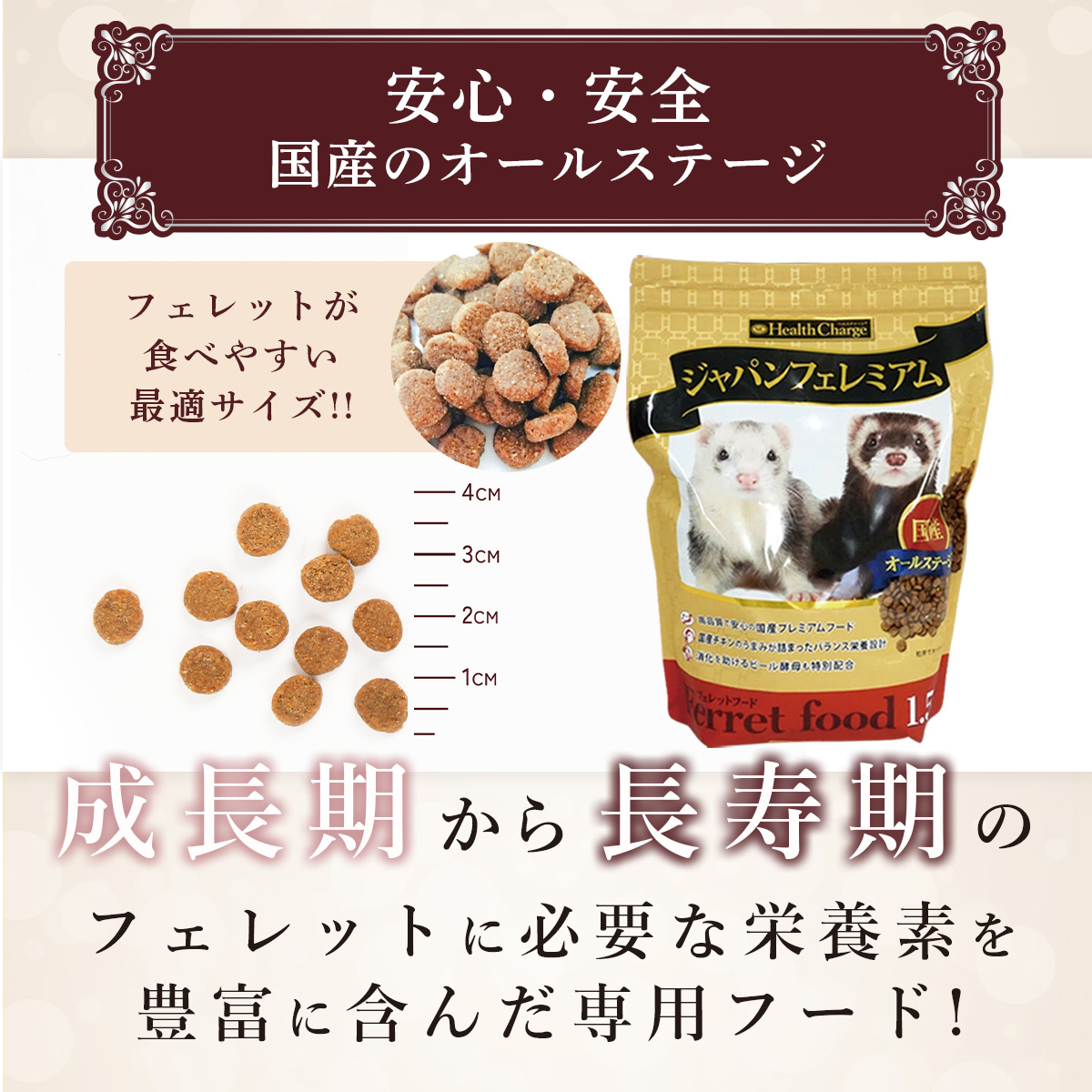 フェレット フェレットフード ジャパンフェレミアム1.5kg(ジャパンプレミアム) ヘルスチャージシリーズ【国産】【オールステージ】フェレット フード フェレットフード ベビー アダルト エサ えさ 餌 タウリン