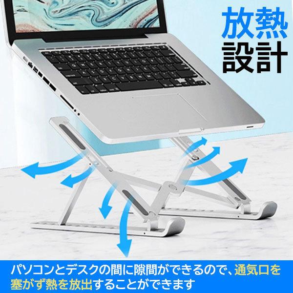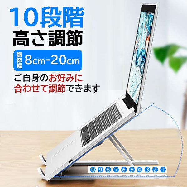 ノートパソコンスタンド 折りたたみ pcスタンド 10段階 高さ調整 角度調整可 滑り止め 軽量 持ち運び コンパクト 収納 肩こり 冷却 放熱 スタンド タブレット