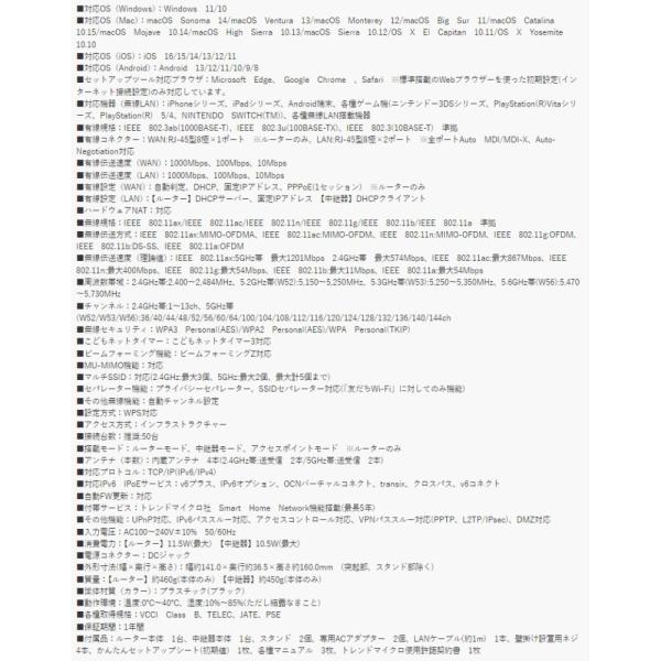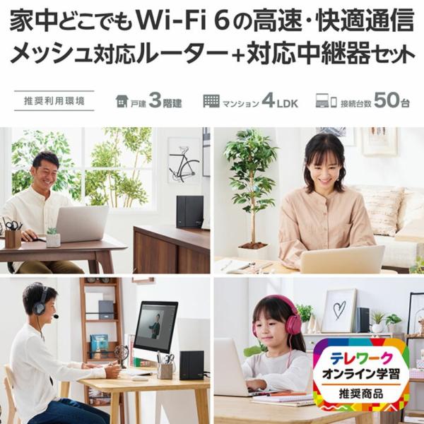 無線LANルーター Wi-Fi6 親機+中継器セット ELECOM エレコム Wi-Fi 6(11ax) 1201+574Mbps IPv6(IPoE) EasyMesh スターターキット ブラック WMC-2LX2-B ◆宅