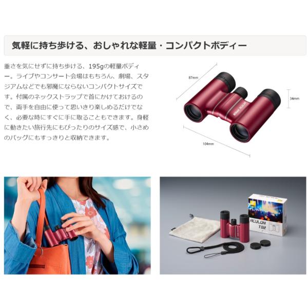 双眼鏡 8倍 ACULON アキュロン T02 8X21 Nikon ニコン 口径21mm ダハプリズム式 多層膜コーティング コンパクト 軽量195g レッド ACT028X21RD ◆宅
