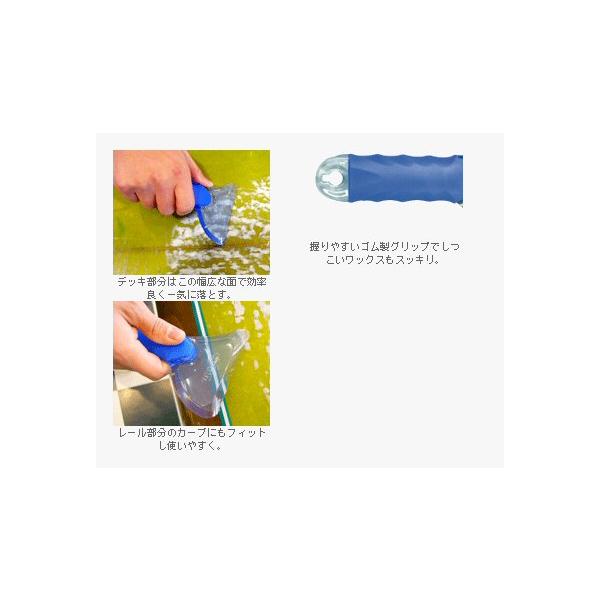 3次元ワックスコームとゴム製グリップでガンコなワックスを簡単に落とします。