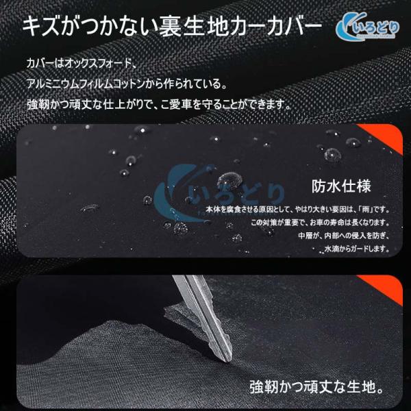 関連ワード:カーボディカバー カーカバー 4層構造 ドア開閉可能 裏起毛 傷がつかない 車カバー 日よけ 防水 紫外線カット 普通自動車 乗用車 軽自動車 台風 黄砂 対策