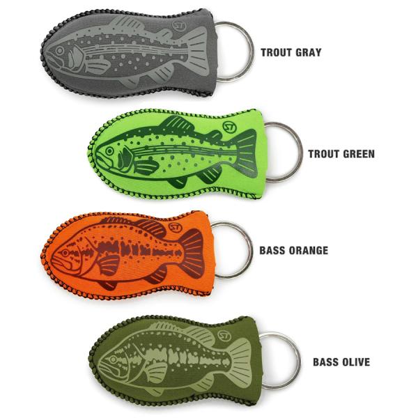 ブラックバスとレインボートラウトがモチーフのフローティングキーチェーン