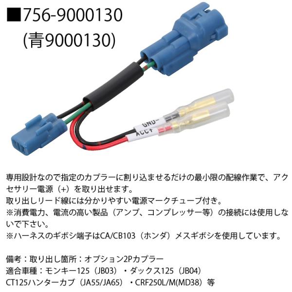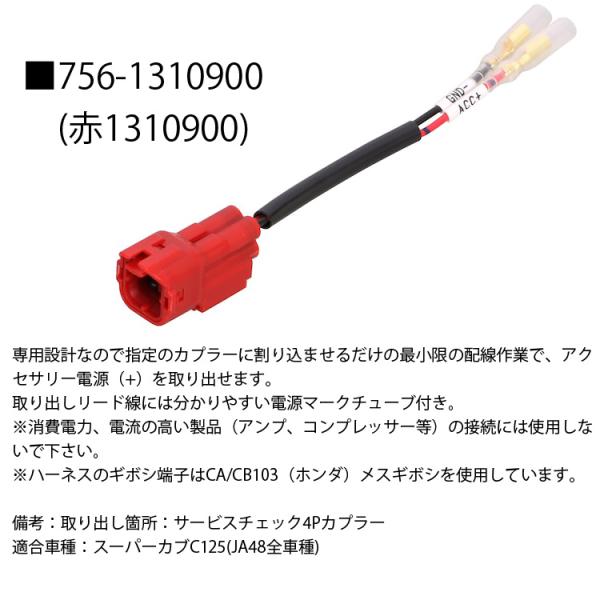 ゆうパケット対応4個迄 KITAKO キタコ 電源取り出し用ハーネス 756-1310900/756-9000130 アクセサリー電源取り出しサービスカプラー