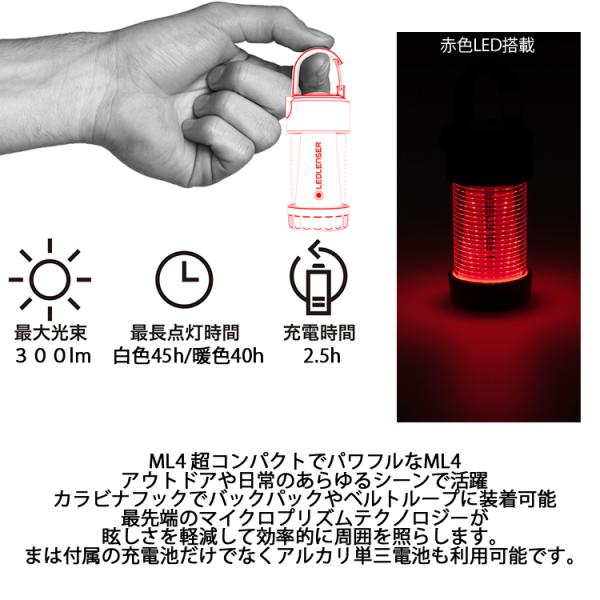 最大7年保証 LEDLENSER レッドレンザー ML4 LEDコンパクトランタン 専用充電池・乾電池対応 フック付きライト あすつく対応