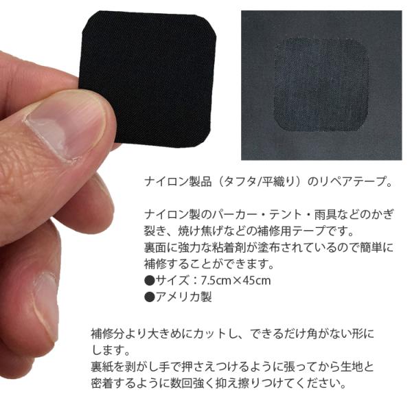 ナイロン製のパーカー・テント・雨具などのかぎ裂き、焼け焦げなどの補修用テープです。