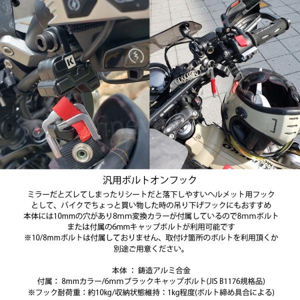 ゆうパケット対応4個迄 KEMEKO ケメコ 汎用ボルトオンフック 6/8/10mm ハンドルフック ヘルメットハンガー バイク用吊り下げフック