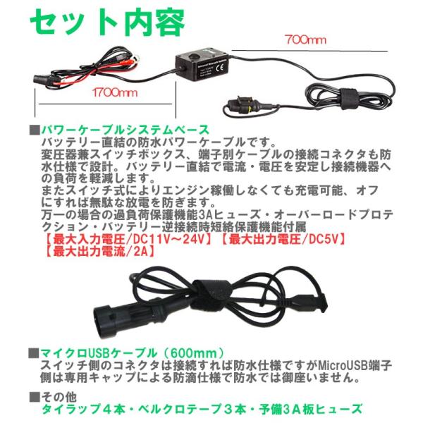 KEMEKO ケメコ バイク用 マイクロUSBキット 防水USB電源 充電パワーケーブルシステム あすつく対応