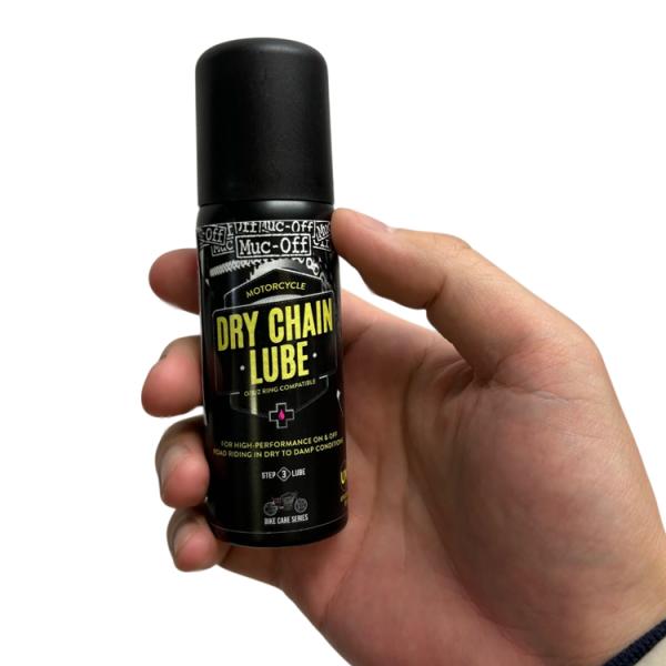Muc-Off Dry Chain Lubeはオートバイのチェーンにかかる極度の圧力に耐えられるように調合されています。