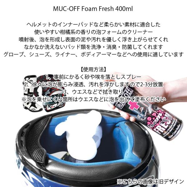 RIDEZ MUC-OFF マックオフ Foam Fresh 400ml フォームフレッシュ 消臭防菌フォーミングクリーナー 泡フォームクリーナー ヘルメットインナー グローブ