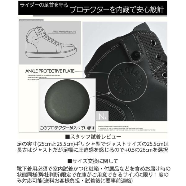 またプロテクターやソールの特殊構造などライディングシューズとしての機能も充実、壊れやすいファスナーにはYKK止水ファスナー採用など通勤・通学などハードにバイクに乗られる方にもお勧めしたいシューズです。