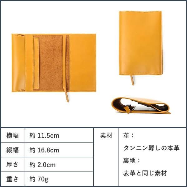 【サイズ】 W16.8×H11.5×D2 (cm) 【重さ】 約70g 【素材】 本体 : タンニン鞣しの本革 裏地 : 表革と同じ素材 【生産国】 バングラディッシュ 【仕様】 文庫本サイズの本を厚みを調整しながら使用できるブックカバーです。
