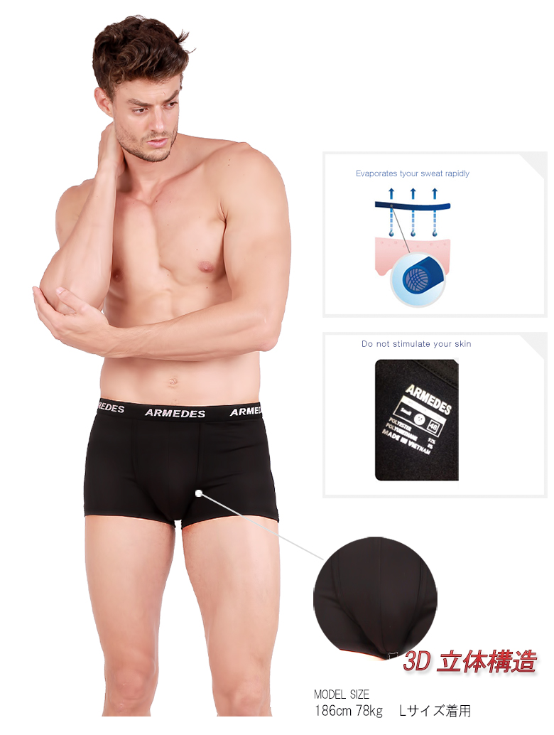 このボクサーパンツは、3D立体構造により体にぴったりフィットし、快適な履き心地を実現します。