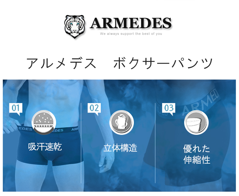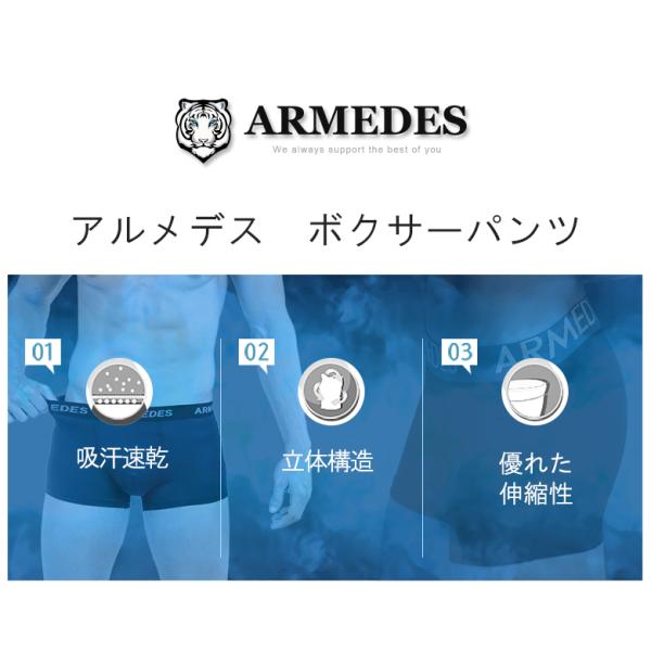 送料無料 ARMEDES アルメデス ボクサーパンツ 3枚セット 吸汗速乾 3D立体構造 前閉じ メンズ M-3XL 全5色 オールシーズン AR02
