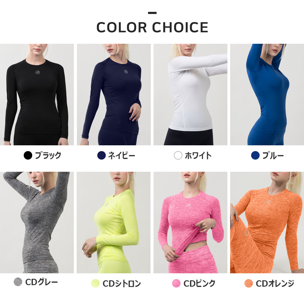 送料無料 ARMEDES アルメデス コンプレッション インナー Tシャツ 接触冷感 ラウンドネック 長袖 丸首 レディース M-XXL 全8色 オールシーズン AR241