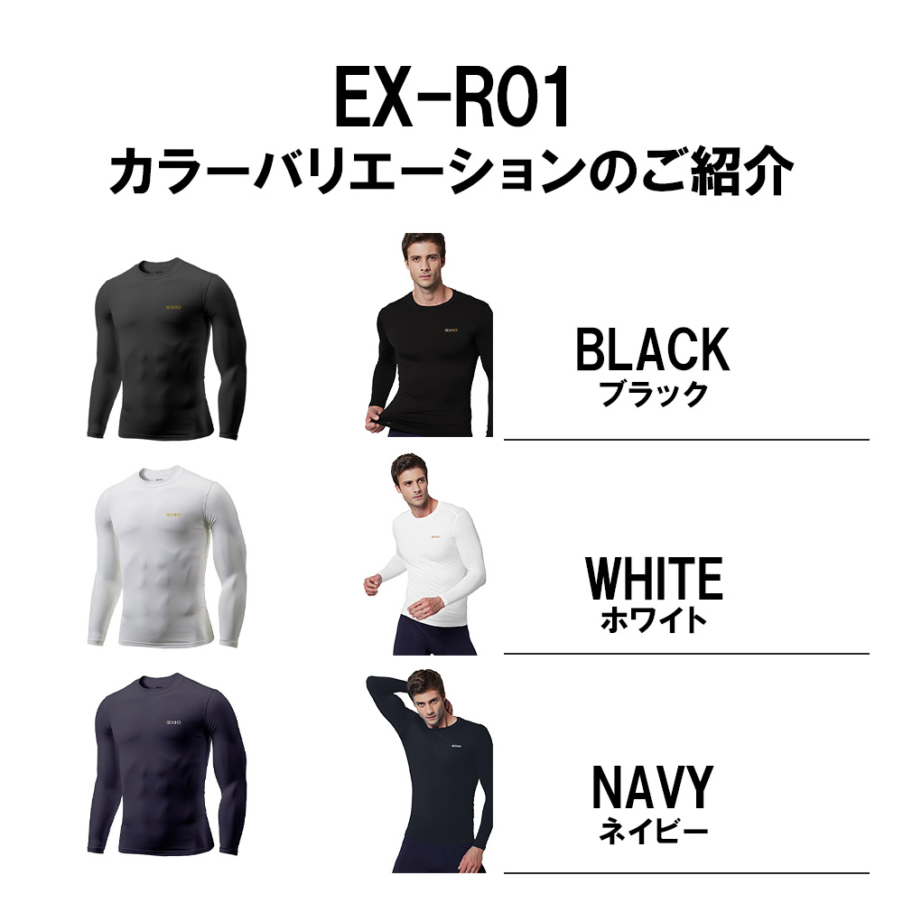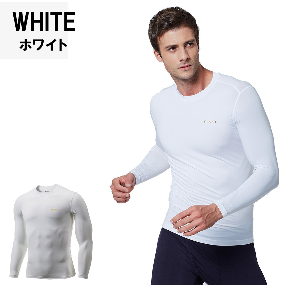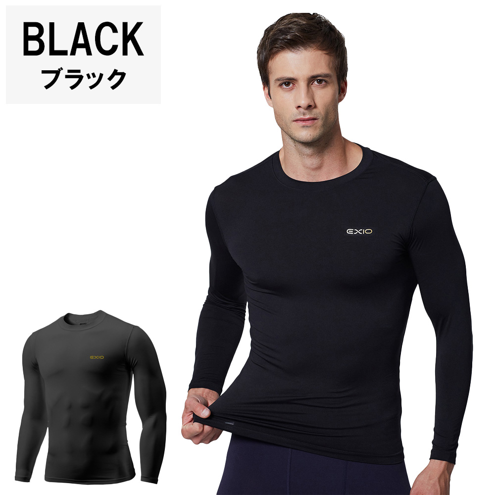 2枚セット EXIO エクシオ 接触冷感 コンプレッション インナー メンズ 長袖 クールネック UVカット 吸汗速乾 スポーツインナー EX-R01 M-XXL 全3色