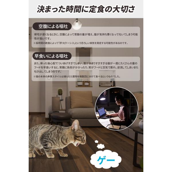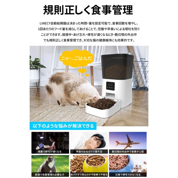 毎回1〜9ポーションまで細かく調整でき、食べ過ぎや空腹による嘔吐対策にも役立ちます。愛猫・愛犬の健康的な食生活をサポートします。