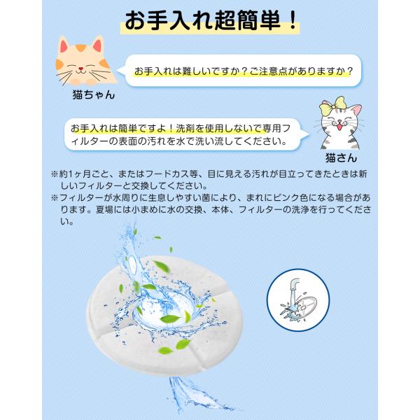 ご使用前に軽く水ですすいでから本体へセットしてください。交換目安は約1ヶ月ですが、使用環境や頭数により早めの交換をおすすめします。