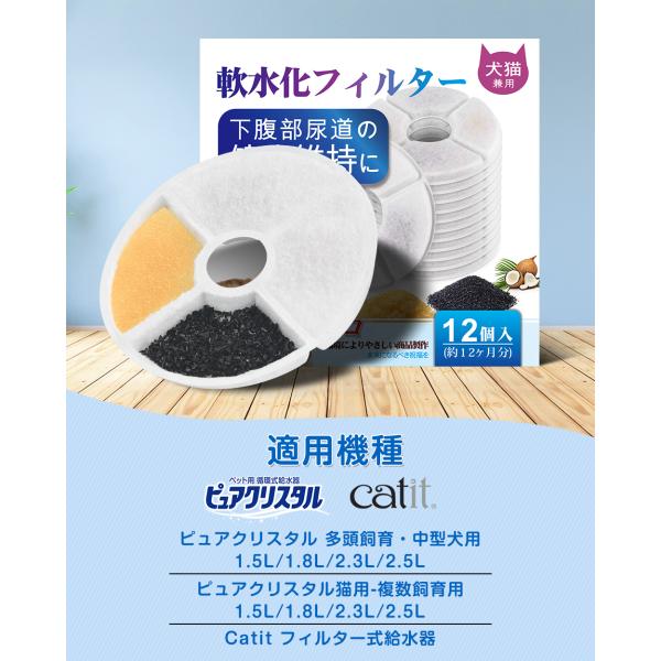 ピュアクリスタル対応 軟水化フィルター 全円 12個入 交換用 猫 犬 自動給水器 給水器フィルター 活性炭 イオン交換樹脂 3層ろ過 Catit対応 爆買