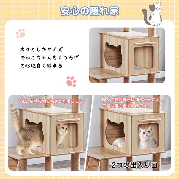 キャットタワー 据え置き 猫タワー キャットツリー 室内用 大型猫 多頭飼い 安定 爪とぎ 麻紐巻き 透明ボウル 隠れ家 展望台 ステップ ハウス 室内猫 運動不足対策 おしゃれ 組立簡単