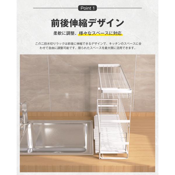 水切りラック 2段 シンク上 伸縮式 大容量 自動排水 水切りかご