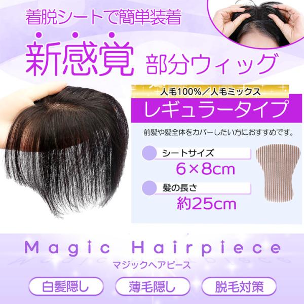 【SALE】ピン無し 部分ウィッグ 人毛 前髪ウィッグ ウィッグ 白髪隠し ボリュームアップ 【人毛100% マジックヘアピース レギュラータイプ】