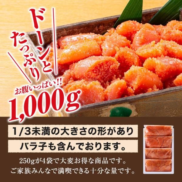明太子 訳あり 無着色 辛子めんたい 切れバラ子 1kg (250g×4) 家庭用 大容量 明太子 切れ子 バラ子 家庭用 海鮮 福さ屋 辛子明太子 お中元 お歳暮 公式ストア