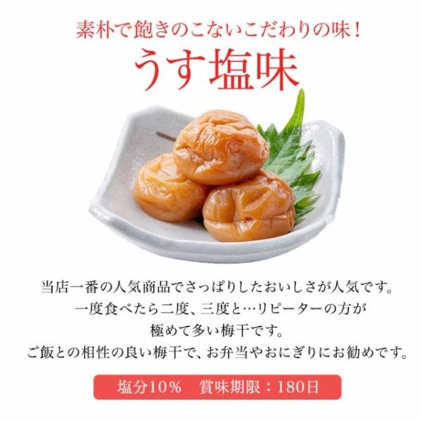 ◆うす塩味(塩分約10%)・しそ漬(塩分約15%)・はちみつ(塩分約7%)・こんぶ梅(塩分約8%)かつお梅(塩分約10%)・甘仕立て(塩分約5%)の詰め合わせです!