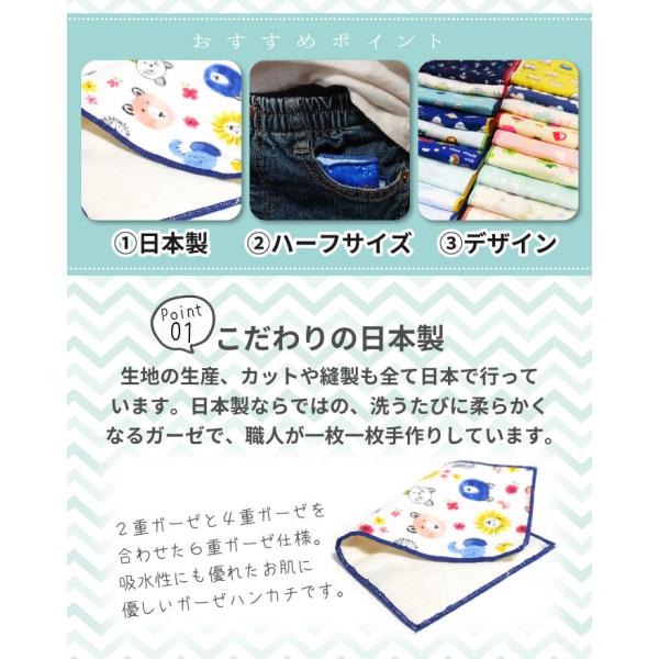 3枚セット ハーフハンカチ 綿100% 6重 ガーゼ 子供 キッズ 男女兼用 ふんわり 柔らか 日本製