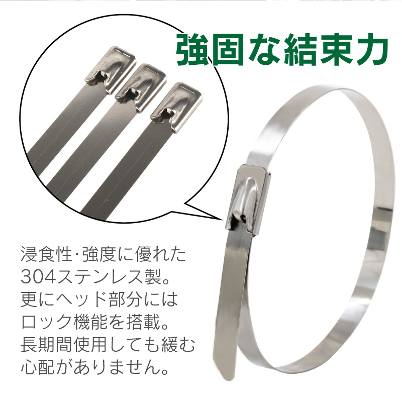 検索ワード:結束タイ ステンレス製 耐食性 耐酸性 耐高温 耐腐食 高耐久 耐候 耐温 SUS304 タイラップ ステンレスバンド インシュロック 銀 シルバー バンド コード まとめる 細い