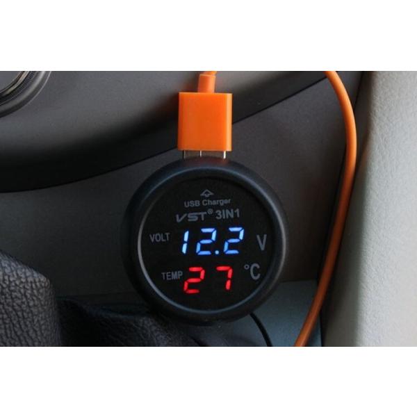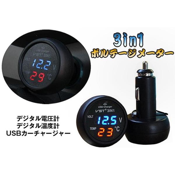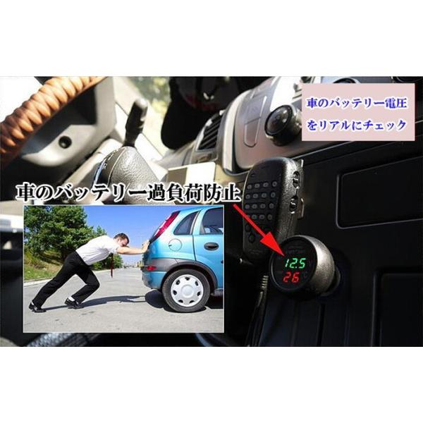 シガーライター式LEDデジタル温度計電圧計 12V/24V対応 シガーソケット差し込むだけ リアルタイムで確認 バッテリーの過負荷防止 オーバーヒート防止 VST21
