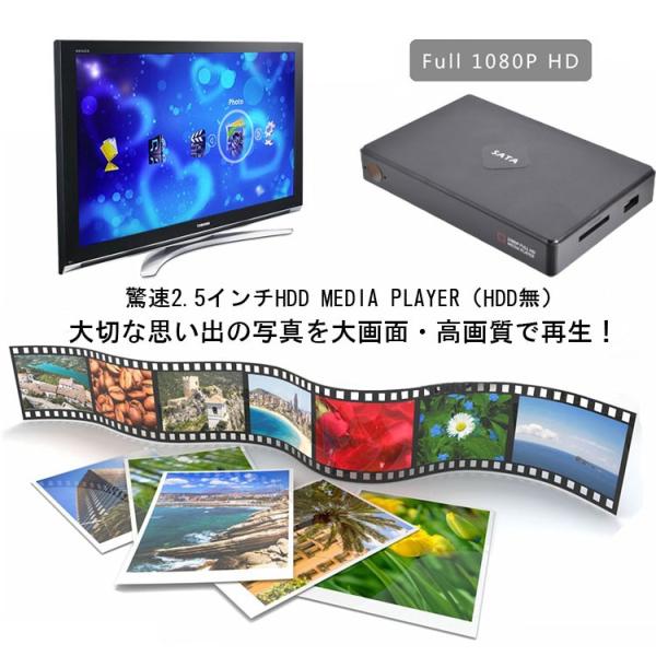 見たい動画を内蔵した2.5インチシリアルATAのハードディスク/SSDにコピーしたり、USBメモリ、SDカードでつなぐだけで、簡単に動画や画像、音楽などを楽しめます。