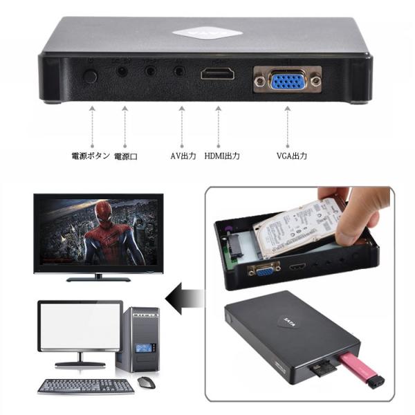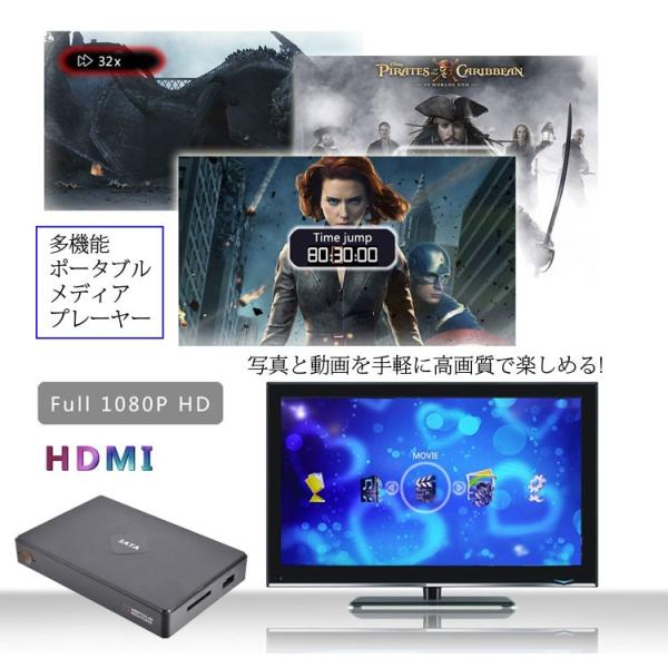 多機能ポータブルメディアプレーヤー 2.5インチHDD/SD/USB対応 HDMI/VGA/AV出力 フルHD Blu-ray対応 1080P対応 高画質再生マルチ出力 Blu-ray再生対応 MOP025