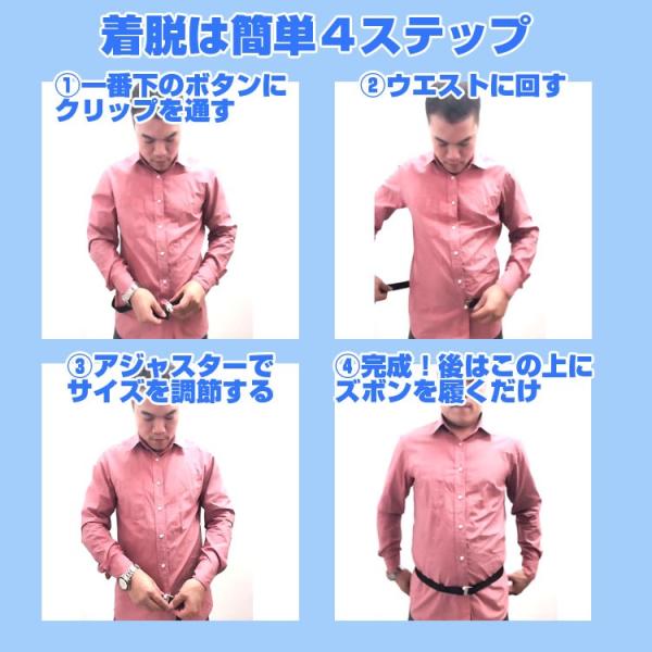 動いてもシャツがはみ出さない、シャツずれ防止ベルトです。