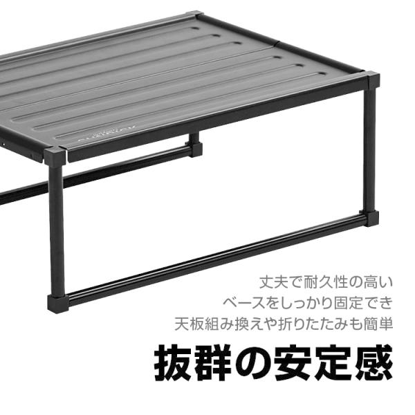 自在に組み換えできるアウトドアソロテーブルです。