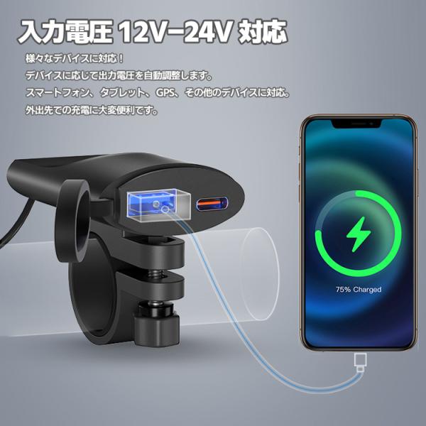 バイク用急速充電器 QC3.0 生活防水 防塵 ケーブル約134cm デュアルポート同時 DC12-24V USB-A 18W & USB-C(PD) 30W 同時充電対応 過負荷保護 原付 WUP1927