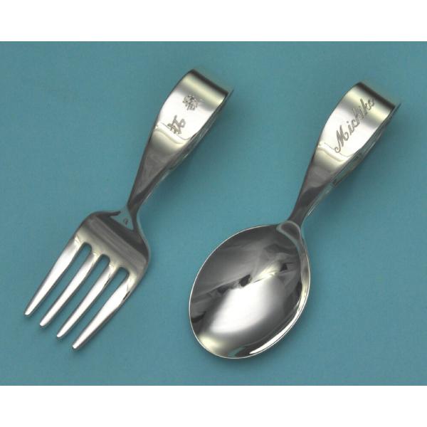 上田銀器工芸 のし 包装 箱 ベビー スプーン フォーク セット 送料無料 機械彫り 銀食器 カラトリー シルバー 出産祝い 名入れ ギフト