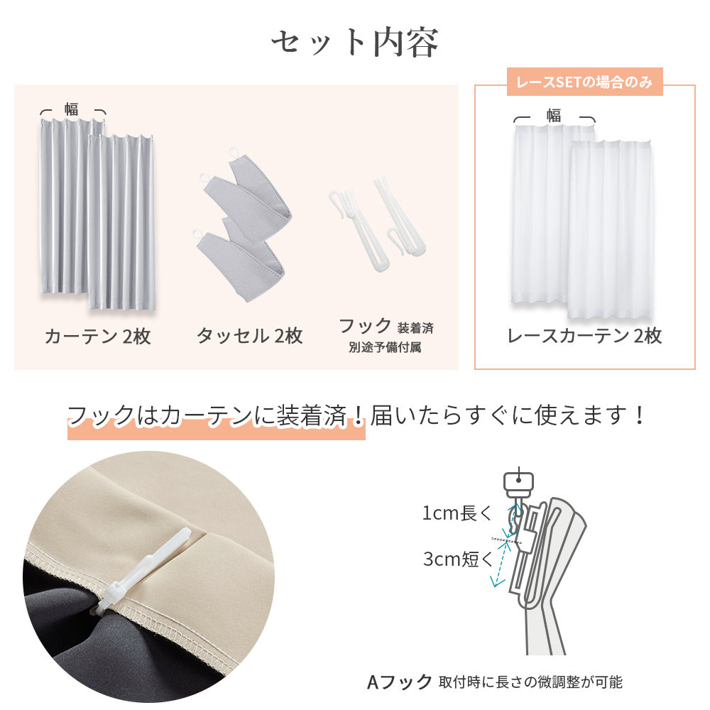 カーテン2枚・レース2枚(4枚セット)・タッセル・フック