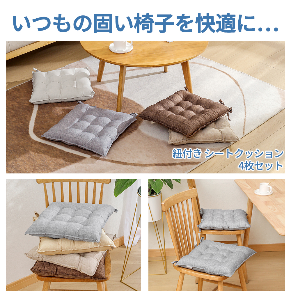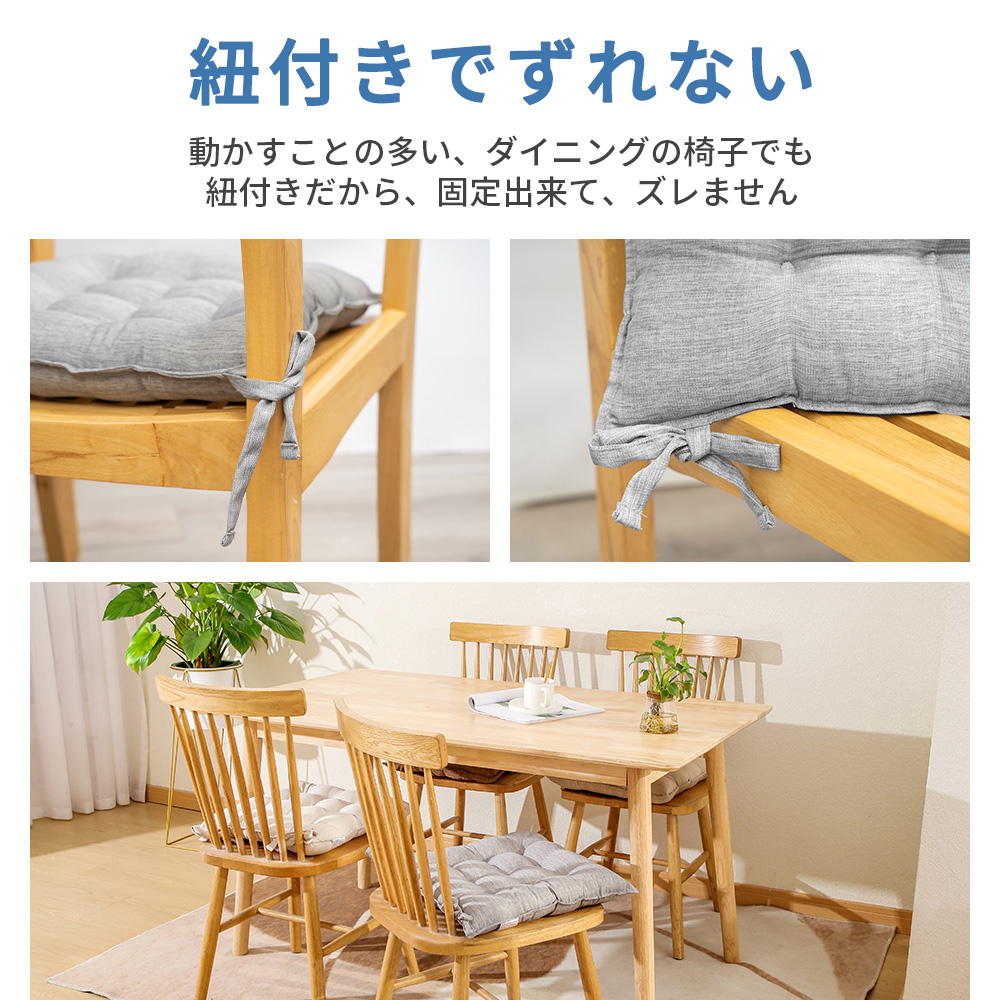 商品名:紐付き 座布団 クッション 4枚セット おしゃれ 北欧 紐付き座布団 椅子用 ひも付き 無地