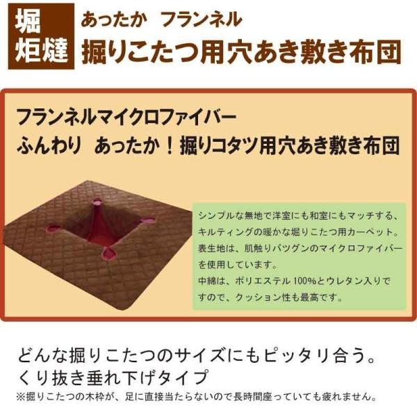 A フランネル 掘りごたつ 敷き布団 長方形 190×240cm 切込タイプ 穴あき 開口部 90×120cm 堀こたつ用 敷布団ラグ