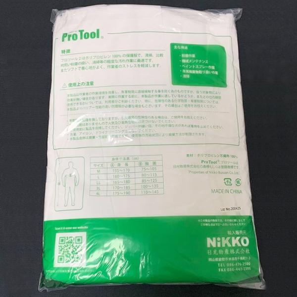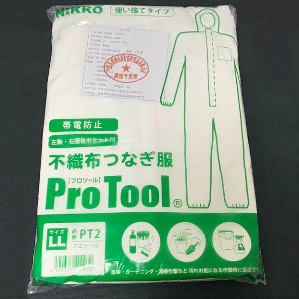 不織布つなぎ服 PT-2 プロツール2 NiKKO 日光物産 使い捨てツナギ 防塵服 帯電防止 塗装服 作業服 工場 農業 清掃