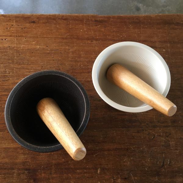 ミニマルでシャープなフォルムなすり鉢&すりこぎ。