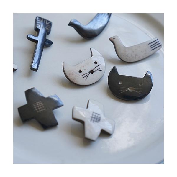 ブローチ 水牛 彫刻 ネコ 鳥 花 14種類 BROOCH クリックポスト同梱可能