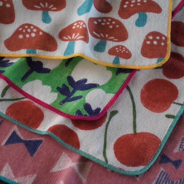 柄がある表面はガーゼ、裏側がパイル地になっており肌触りの良いハンカチです。