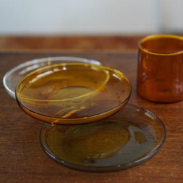型吹きガラスならではの色や厚みのムラが、シンプルなプレートにニュアンスを加えています。