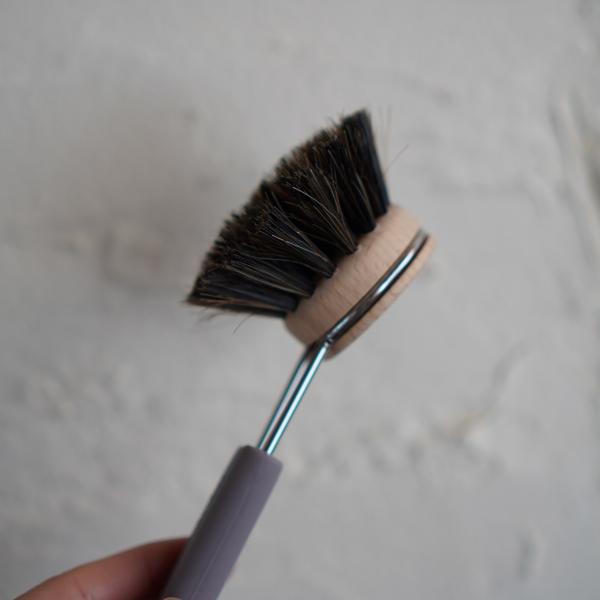 ブラシヘッドは馬毛とポリプロピレンの混合毛を使用。弾力性があり柔らかく、洗剤の泡立ちもよいうえ、柔らかさが汚れをきちんとキャッチ。
