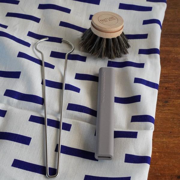 手を汚さず洗い物ができる、すべりにくいシリコーンハンドルと、馬毛混の柔らかいブラシで、家事もラクラクです。