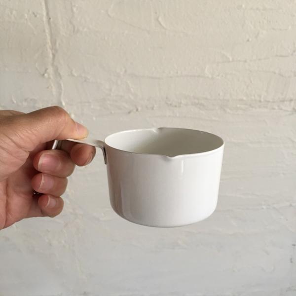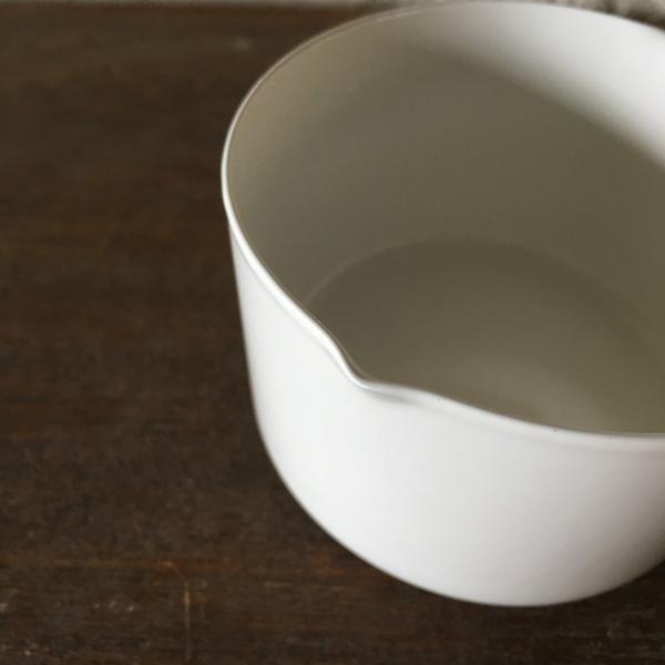 清潔感のある白い琺瑯のカップはひとつひとつ手作りで仕上げていてどれも優しい表情をしています。